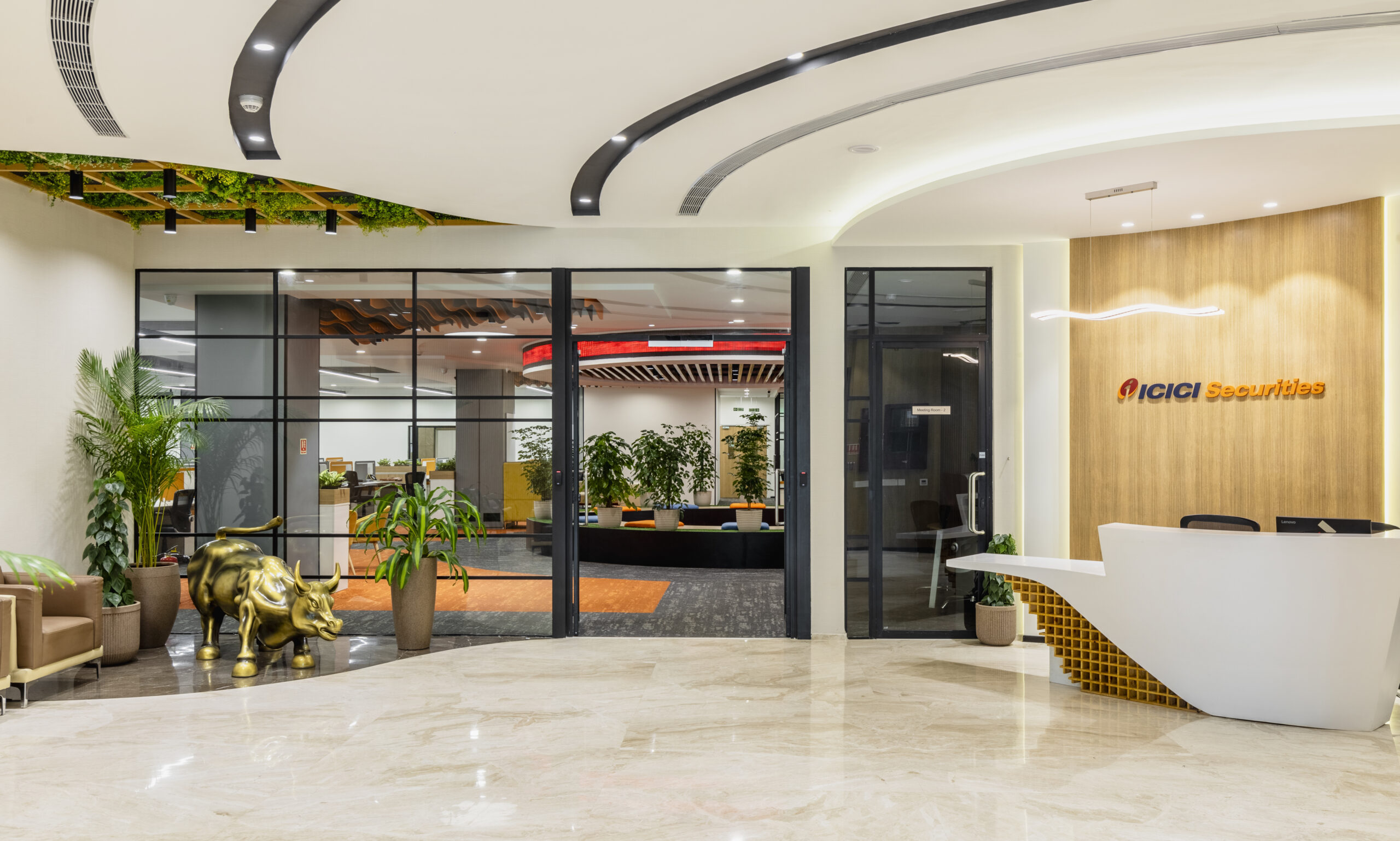 Team One Architects is proud to have designed the corporate interiors for ICICI Securities, a leading financial services firm, delivering a sophisticated, high-performance workspace that aligns with the dynamic demands of the securities and investment sector.