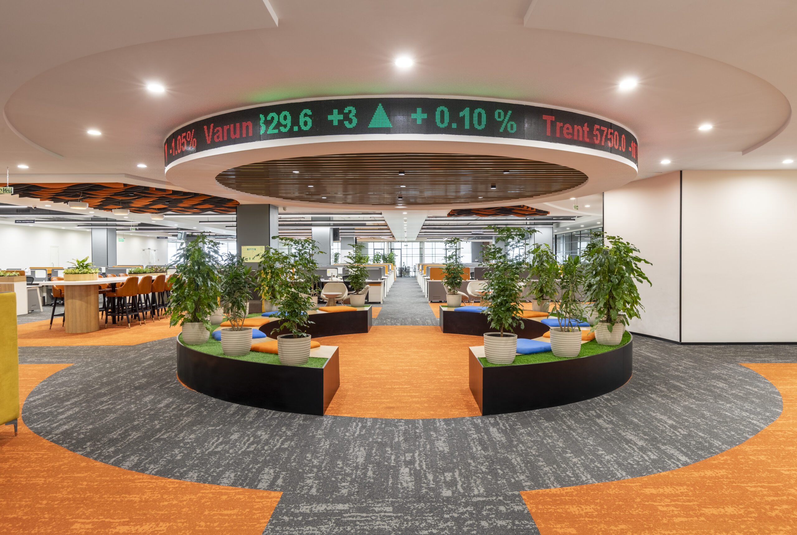 The project emphasizes functional elegance, seamless collaboration zones, and ergonomic environments tailored to enhance productivity and employee well-being. Incorporating modern aesthetics with strategic spatial planning, the interiors reflect ICICI Securities’ professional stature while prioritizing sustainability and operational efficiency.