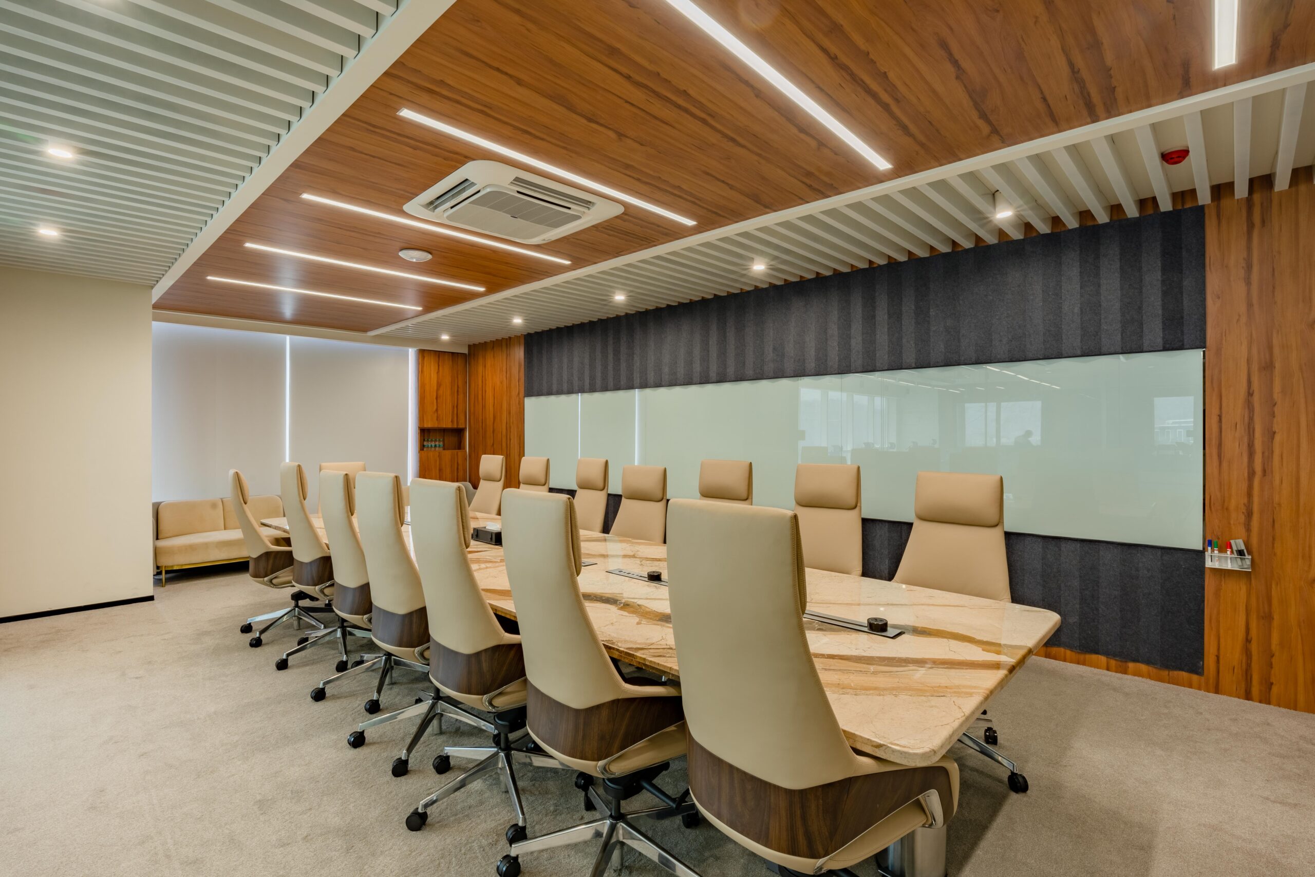Description: Crafted just prior to IdeaForge’s landmark IPO, this headquarters reflects the company’s ethos of precision, innovation, and bold vision. Designed by TOA – Team One Architects, the Scandinavian-inspired space features drone-shaped workstations, biophilic amphitheatres, Autofrost partitions, and reclaimed materials—balancing form, function, and brand storytelling.