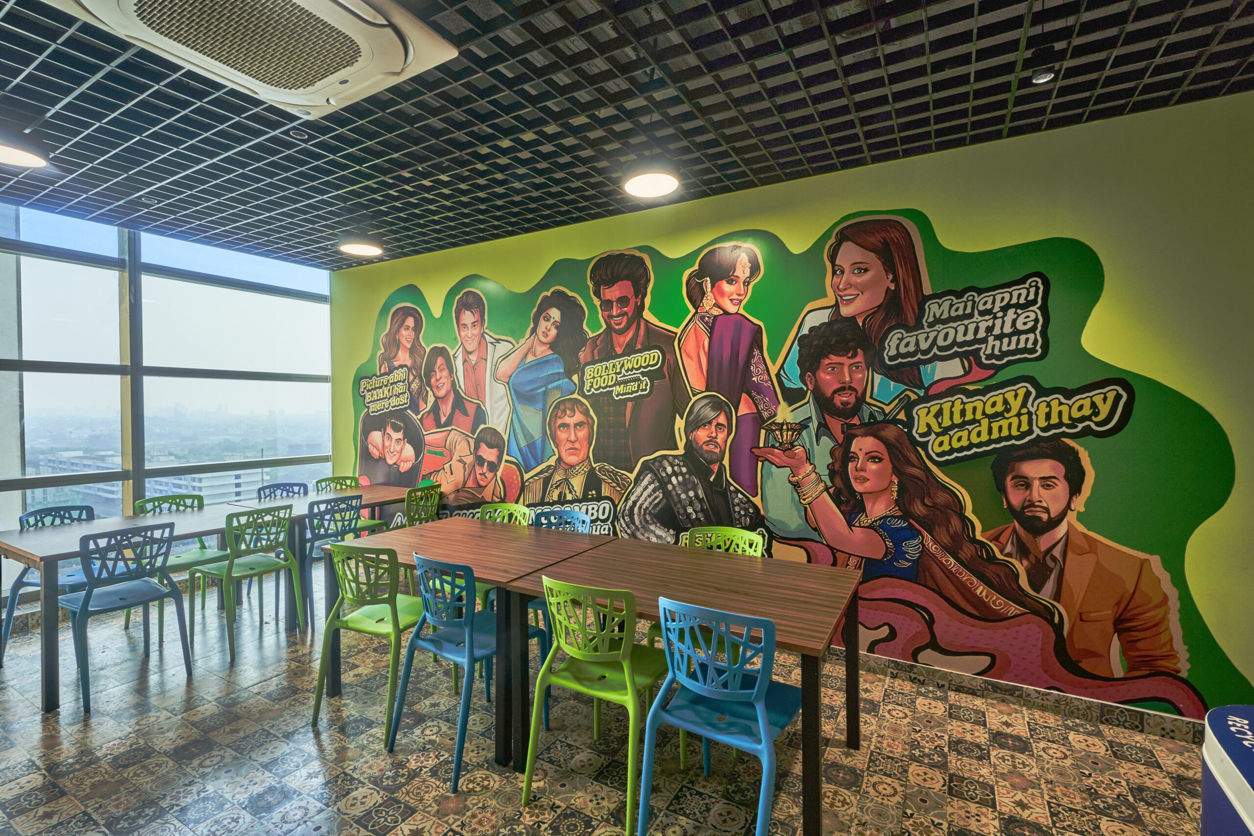 The design further integrates brand identity through a strategic use of colour, while unique features such as a coin-art world map and value-driven columns add layers of meaning and storytelling. Social spaces like the Bollywood-themed cafeteria and Irani café-inspired pantry introduce warmth and familiarity, enhancing the overall workplace experience.
