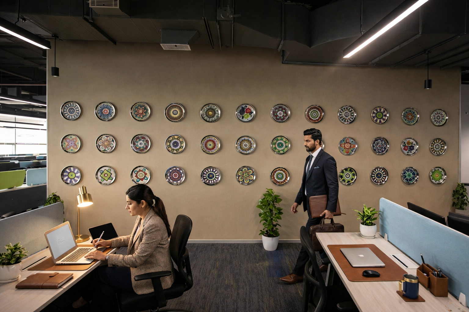 From a reception inspired by the iconic black-and-white taxi to interiors reflecting railway networks, heritage landmarks, and the celebrated Dabbawalla system, each element narrates a story of precision, connectivity, and resilience. Workspaces, meeting rooms, and collaborative zones are infused with subtle cultural references, creating an environment that is engaging yet sophisticated.