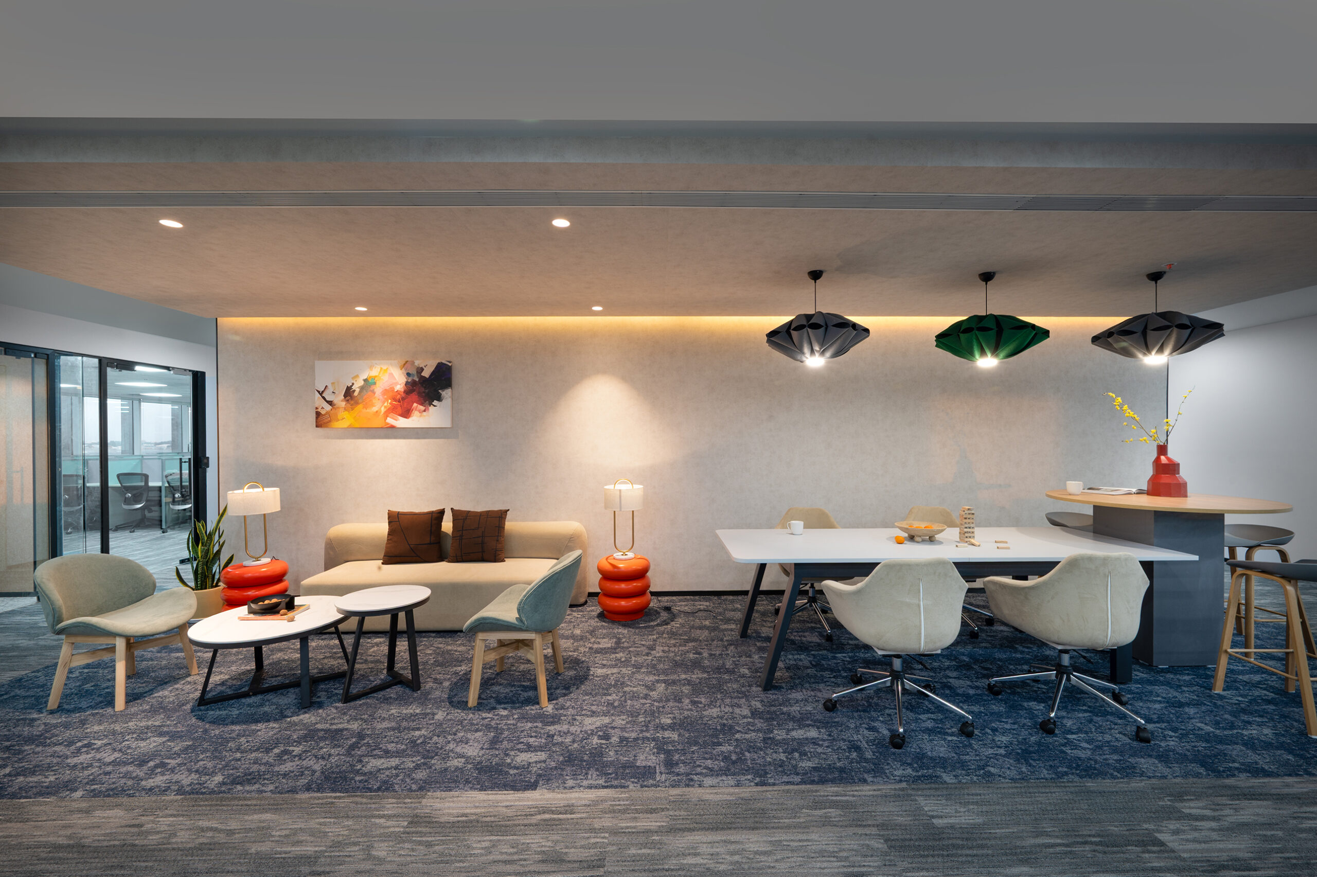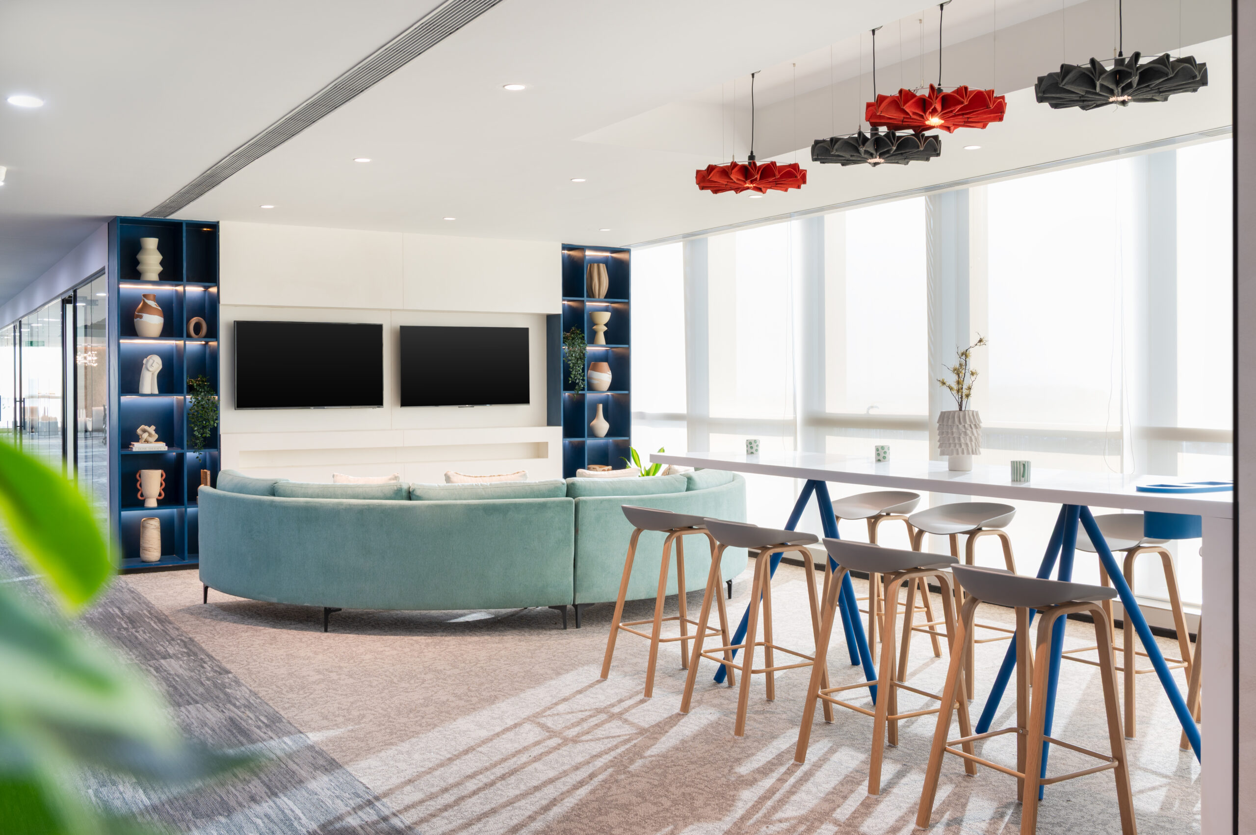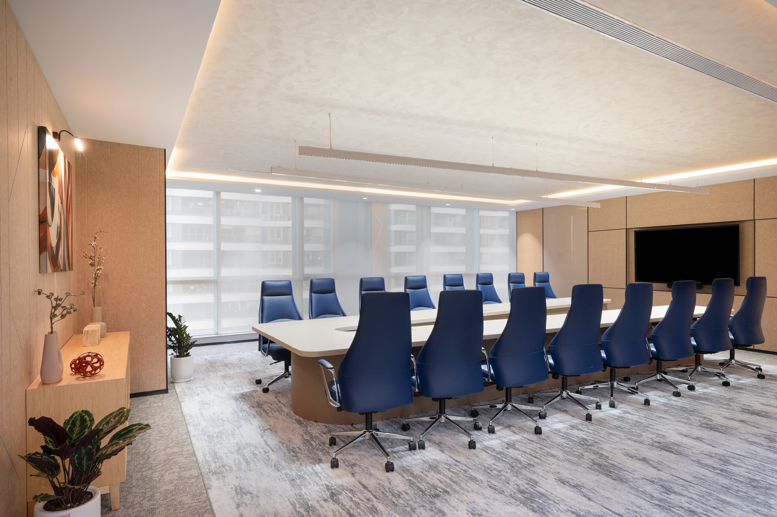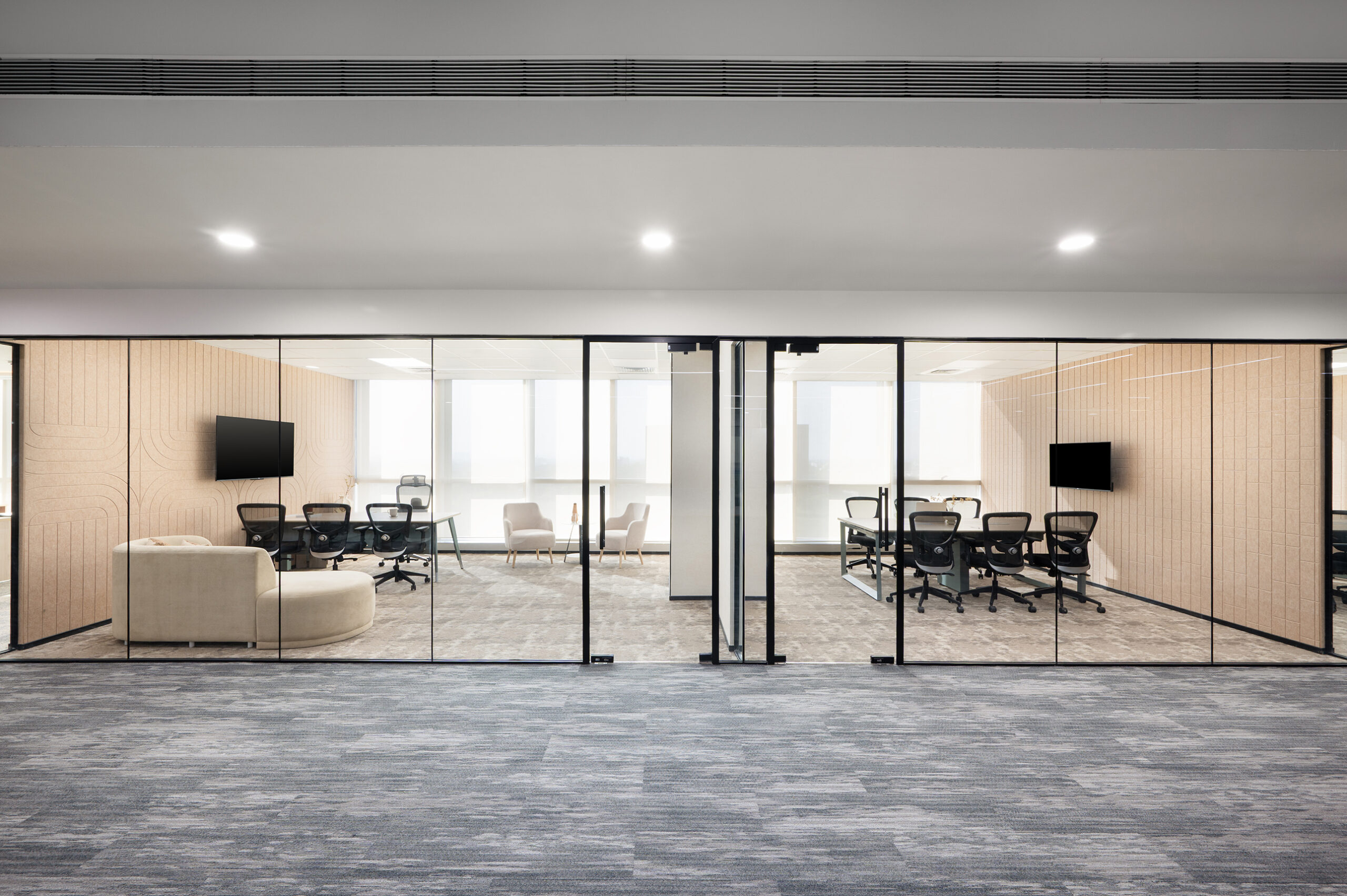 Based on the concept “Syncmotion”, the design fuses synchronization and movement as core spatial drivers. Clean lines, kinetic forms, and a rhythmic planning approach create a dynamic yet highly functional workplace environment. Modular spatial planning and layered transparency across zones enhance collaboration while maintaining clarity and operational efficiency.