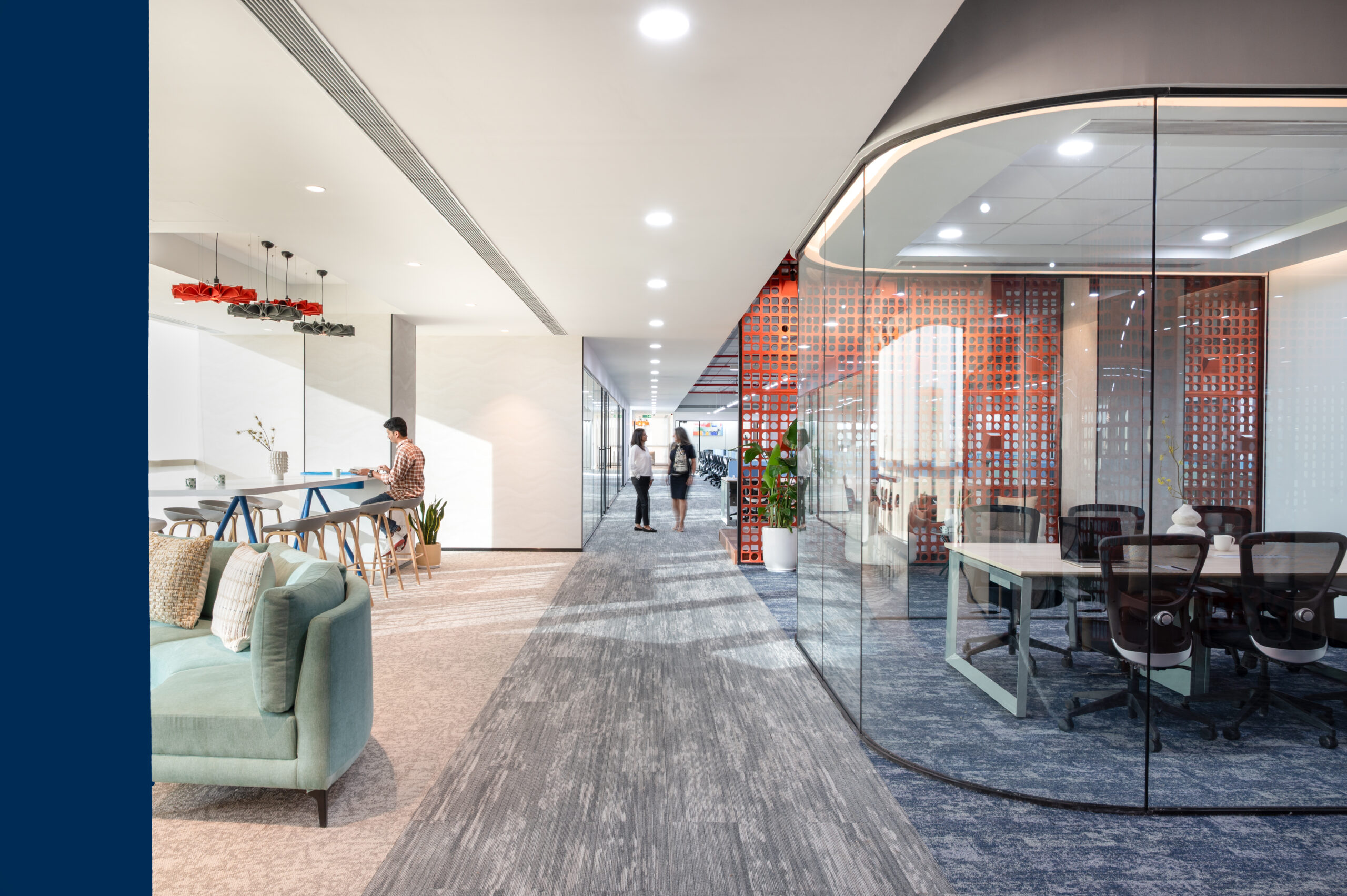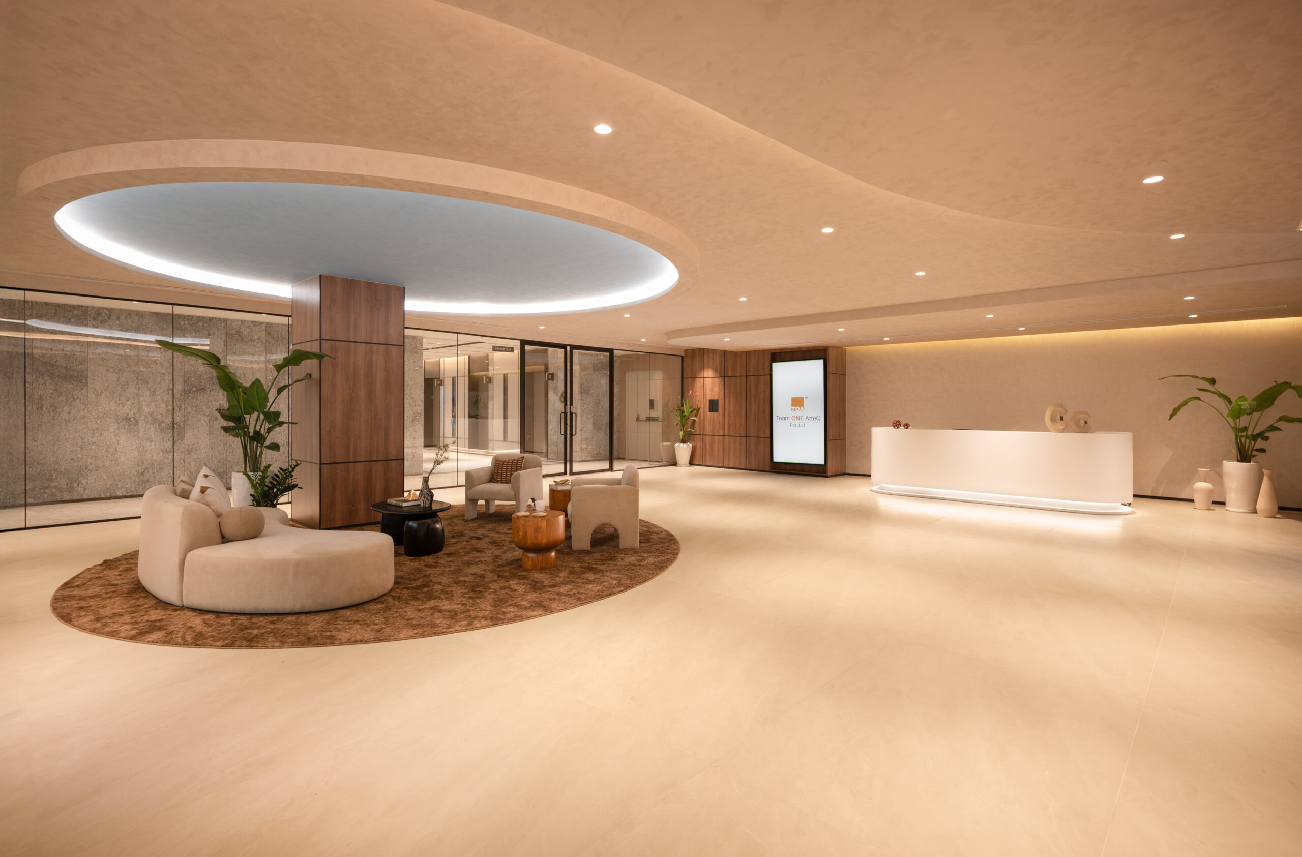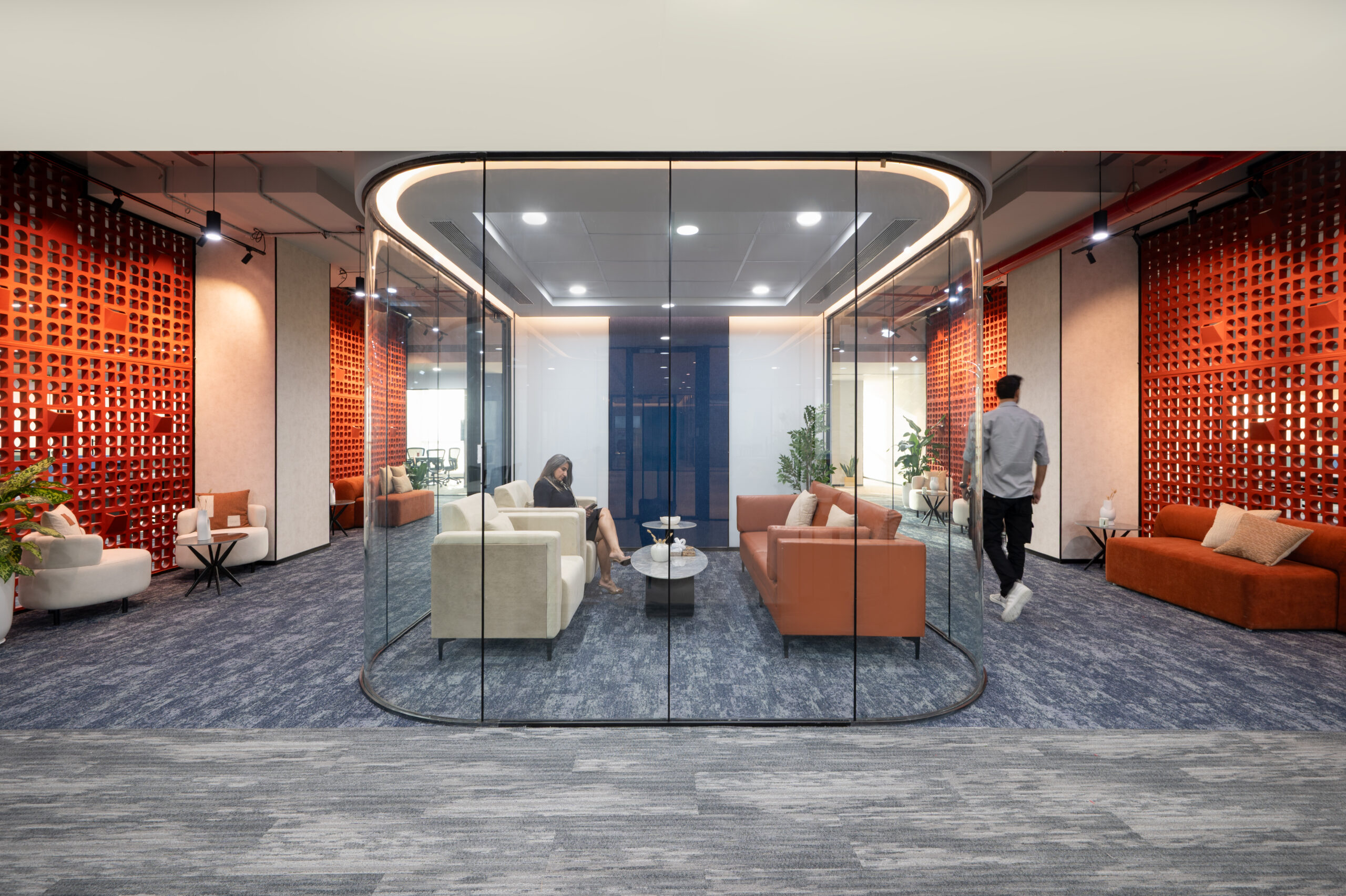 Team One Architects designed the corporate workspace for Intangle, a digital technology-driven organization in the shipping sector. Located in Pune, the 42,500 sq. ft. office reflects the company’s innovation-led approach through a design language that emphasizes precision, adaptability, and seamless spatial flow.