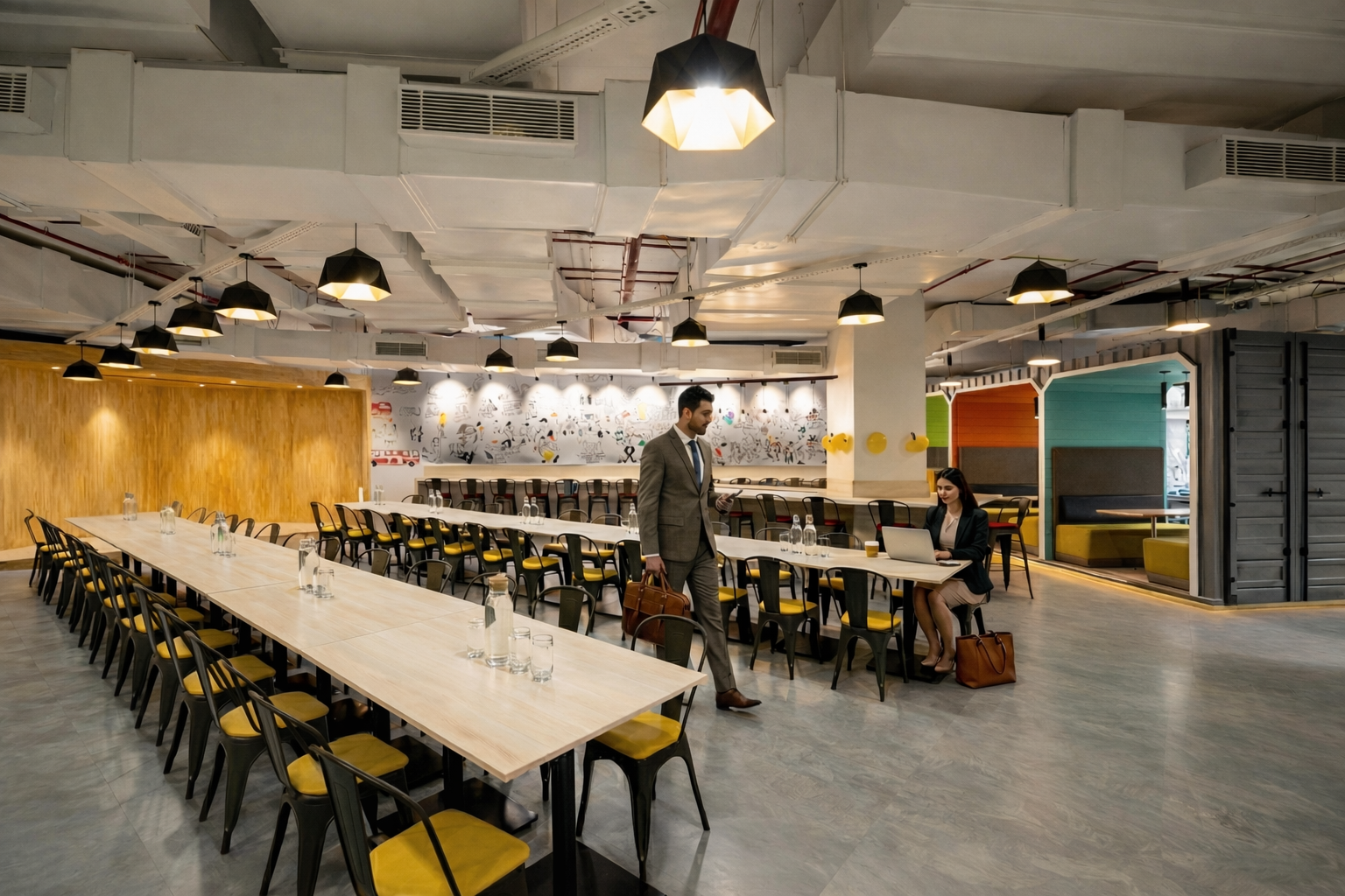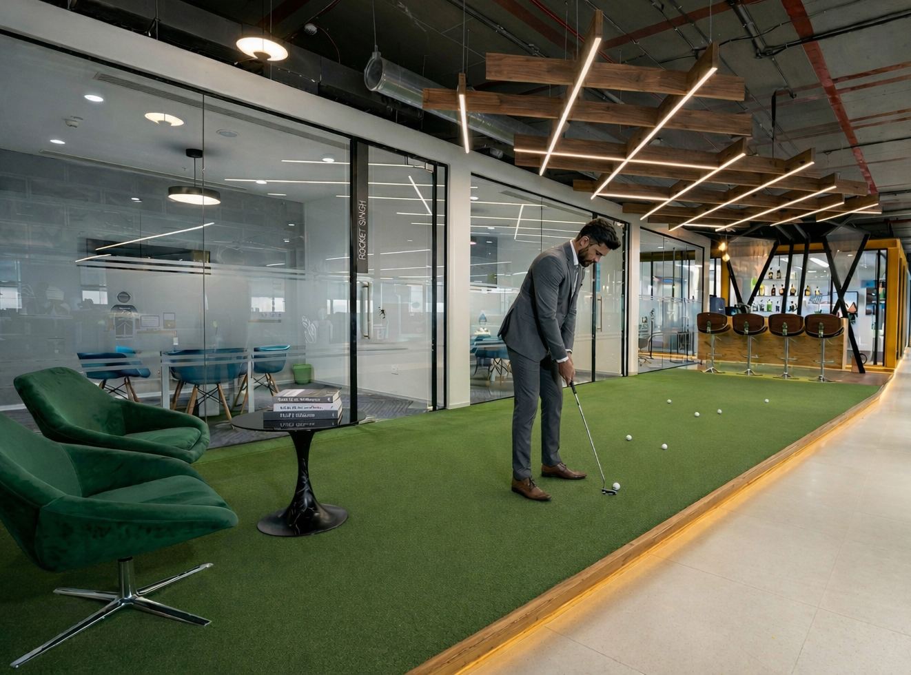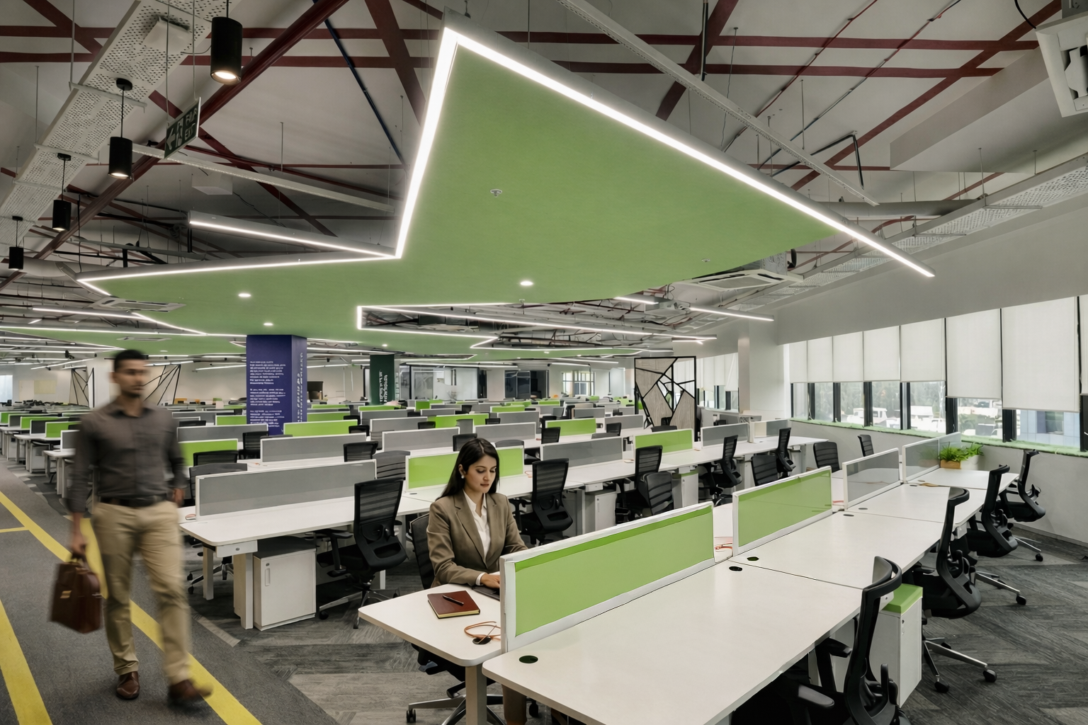 vConstruct’s Pune office is envisioned as a future-ready workspace that blends innovation with human-centric design. The concept focuses on creating a seamless flow between collaboration, focus, and relaxation zones through open planning, biophilic elements, and bold visual accents. A striking reception with integrated branding and greenery establishes identity, while dynamic lighting and ceiling features enhance spatial character. Workstations are designed for efficiency and flexibility, complemented by breakout areas that encourage creativity and interaction. Warm materials, clean lines, and intuitive circulation create a cohesive environment that reflects vConstruct’s forward-thinking ethos and commitment to productivity, well-being, and connected work culture.
